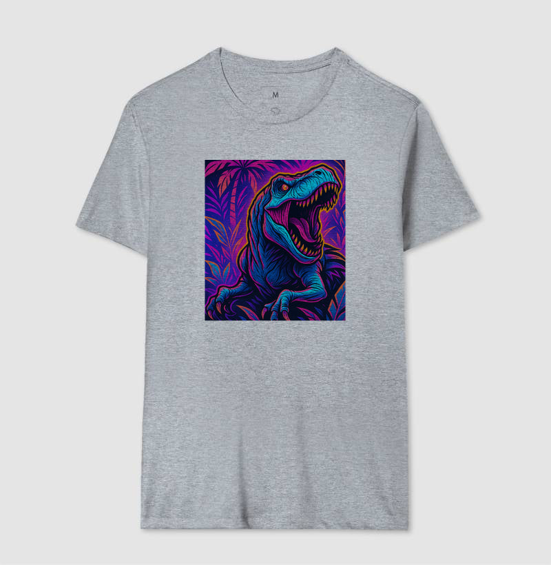 Camiseta Paleo Trend – T-Rex Neon na Selva Tropical, desenvolvida com a alta qualidade Reserva Ink, referência em conforto, resistência e design premium. A estampa exclusiva traz um imponente Tiranossauro Rex em tons intensos de azul elétrico e rosa neon, destacando-se em meio a uma selva tropical em cores vibrantes de roxo e laranja. O resultado é uma fusão perfeita entre arte retrô neon e modernidade urbana, criando uma peça ousada para quem busca originalidade, autenticidade e atitude.
